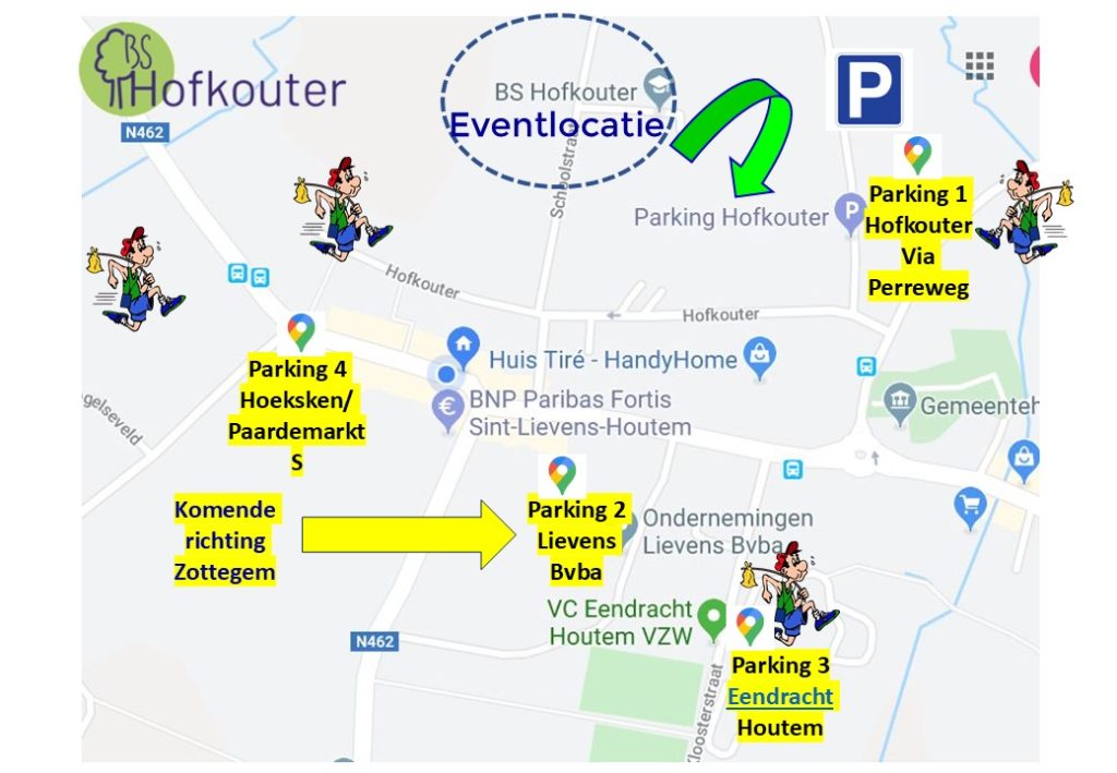 Idem aan startlocatie: Basisschool Hofkouter Schoolstraat 4, 9520 Sint-Lievens-Houtem.
